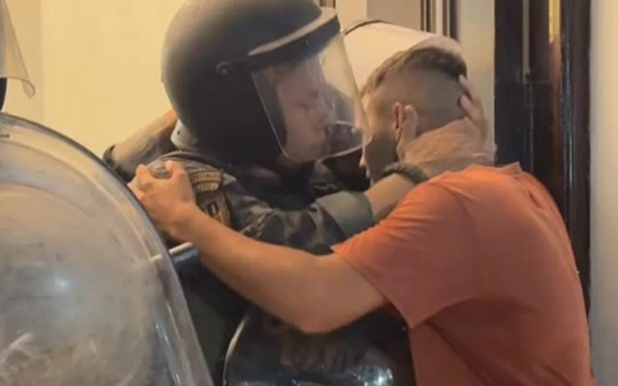 Sociedad "QUEREMOS JUSTICIA, POR FAVOR SE LOS PIDO" Se volvió viral por el abrazo con un policía al reclamar por el abuso a su hija de 3 años Cristian López, de 21 años, pedía la detención del hombre que abusó sexualmente de la menor de edad, cuando la insólita escena se volvió viral.