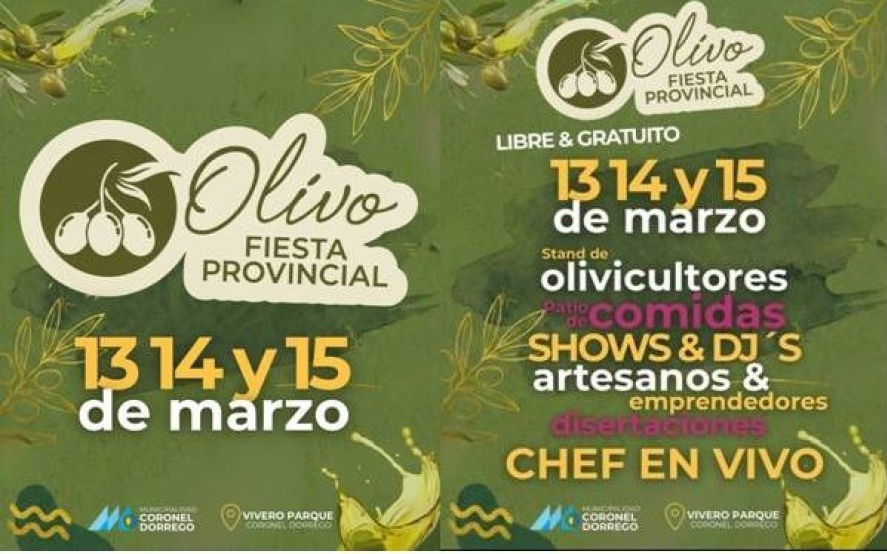 Municipios CORONEL DORREGO Fiesta del Olivo. Se trabaja en la preparación del importante evento Entre el 13 y el 15 de marzo próximo en el Vivero Parque