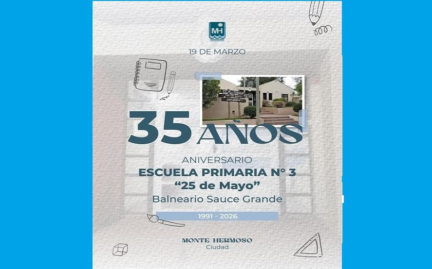 Municipios MONTE HERMOSO Educación: La Escuela Primaria N°3 "25 de Mayo" de Sauce Grande celebra su 35° Aniversario