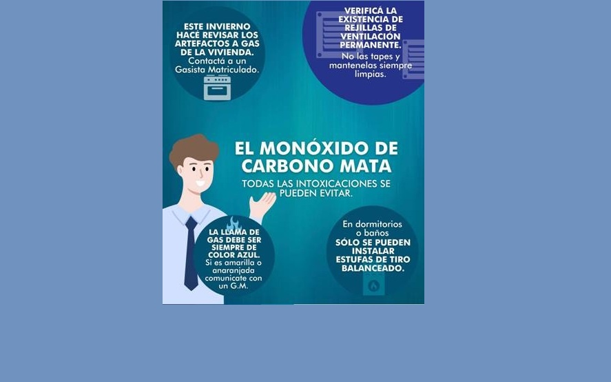 Municipios CORONEL DORREGO La Municipalidad de Coronel Dorrego recomienda una serie de medidas para prevenir INTOXICACIONES POR MONÓXIDO DE CARBONO El monóxido de carbono es un gas venenoso que en altas concentraciones puede ocasionar la muerte en pocos minutos.