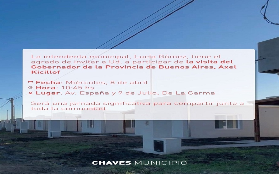 Municipios GONZALES CHAVES La Intendenta Lucía Gómez invita a instituciones, establecimientos educativos y a la comunidad, a la visita del Gobernador Axel Kicillof en De La Garma