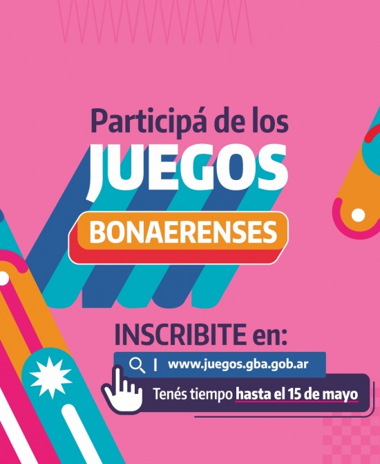 Municipios TRES ARROYOS ¡Abre la inscripción a los Juegos Bonaerenses! La Dirección de Deportes y Políticas para la juventud informa que a partir del miércoles 8 de abril quedará habilitada la inscripción para participar de una nueva edición de los Juegos Bonaerenses hasta el 15 de mayo.
