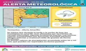 22/01/2026 | BAHÍA BLANCA Alerta meteorológica en Bahía Blanca- recomendaciones y suspensión de colonias de verano