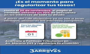 8/11/2025 | TRES ARROYOS Si debés tasas, tenés hasta el 30 de Noviembre para regularizar con el 70 % menos de intereses