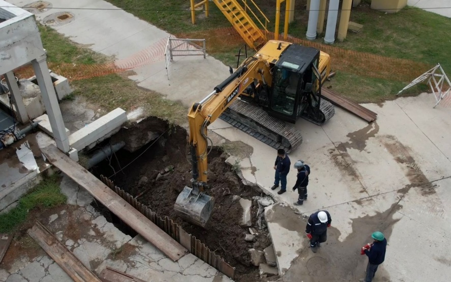 La obra, que se desarrolla dentro del predio del establecimiento depurador, contempla la rehabilitación estructural de 77 metros de un colector de 500 milímetros de diámetro, mediante el método "relining", es decir, a través de la inserción de una tubería dentro de la existente. De esta manera, se recuperará el funcionamiento óptimo de la cañería que presentaba inconvenientes en su capacidad de transporte producto de la agresividad del suelo y la antigüedad.