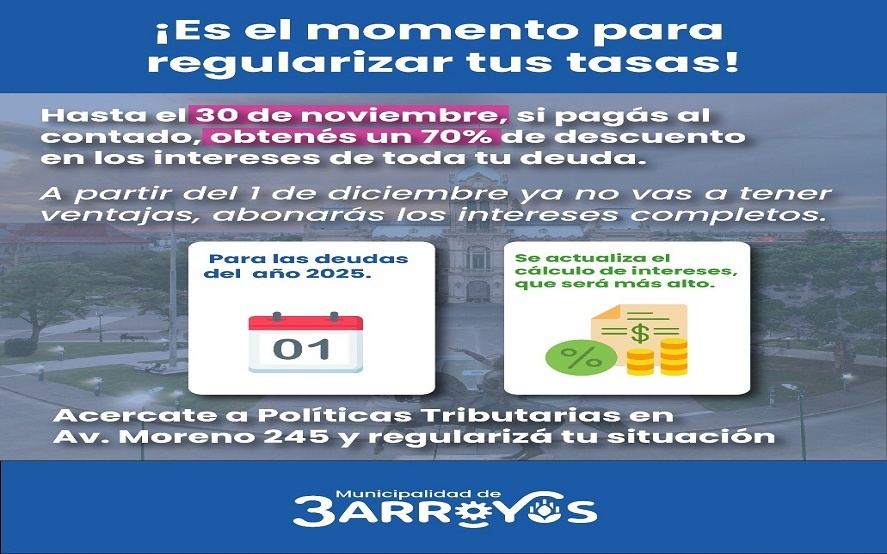 Se trata de la última oportunidad antes de la entrada en vigencia de la Ordenanza N° 7811/2025, que establece un nuevo régimen de cobrabilidad de tasas, que pone fin a la ventaja para los deudores y reconoce el esfuerzo de quienes cumplen.