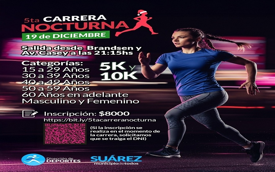 Incripción a través del link: https://bit.ly/5tacarreranocturna