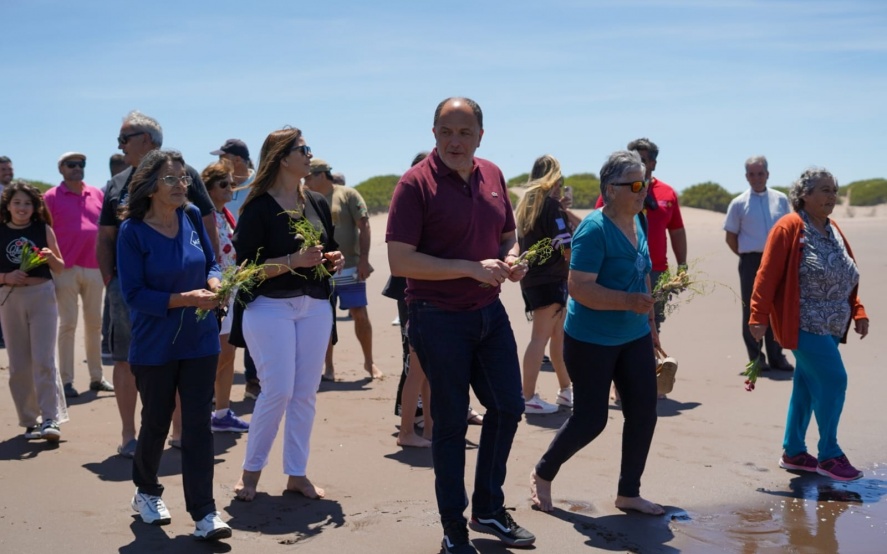 El encuentro comenzó con la lectura de una carta de una vecina, continuo con la bendición del sacerdote local, un gesto simbólico que cada año acompaña la apertura de las playas.