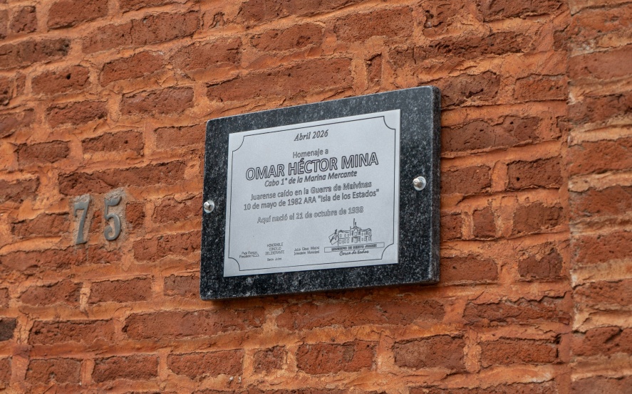 En ese marco, y finalizado el acto en el establecimiento, la comitiva se trasladó a la vivienda donde nació Omar Héctor Mina, donde junto a sus hijos, Gladys y Omar, se realizó el descubrimiento de una placa en homenaje al juarense caído en Malvinas.