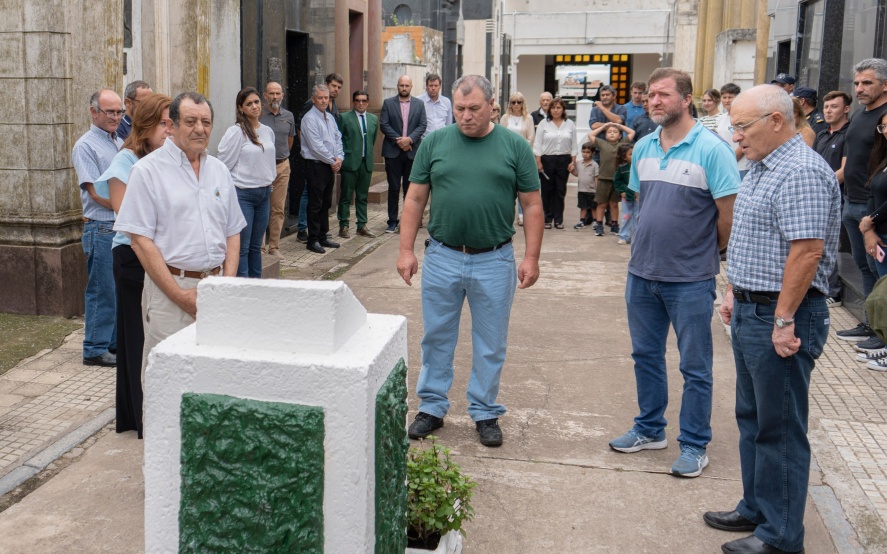 Posteriormente, en la Plaza Islas Malvinas, el intendente Marini, junto al presidente del HCD, Ramiro Peón; la inspectora jefa distrital, Ana Lorena Pereyra; y familiares de José Luis Peralta y Omar Héctor Mina, realizaron la colocación de una ofrenda floral en el monumento que rinde homenaje a las y los veteranos y caídos en la guerra.