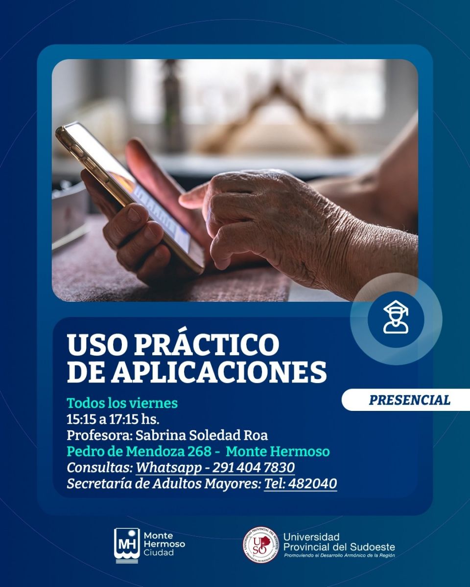 Educación: La Universidad Provincial del Sudoeste junto con la Secretaría de Adultos Mayores, informan que desde HOY se encuentra abierta la inscripción a los nuevos cursos de Francés Avanzado y Uso Práctico de Aplicaciones, destinados a mayores de 55 año