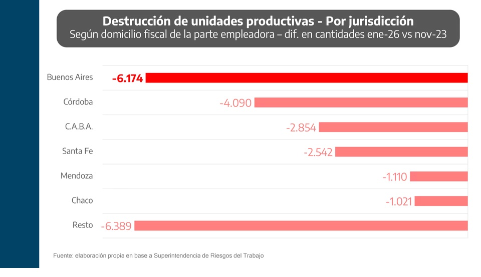 En ese contexto, la provincia de Buenos Aires es la más afectada, con 6.174 empresas menos; el 26% del total.